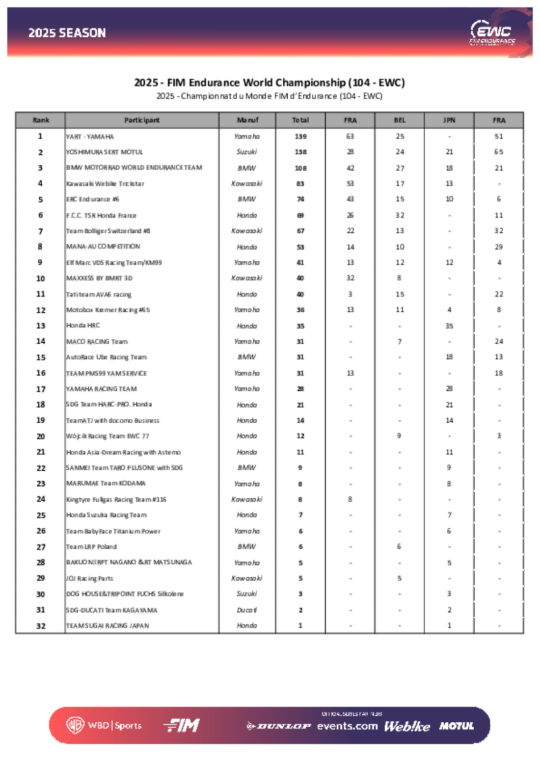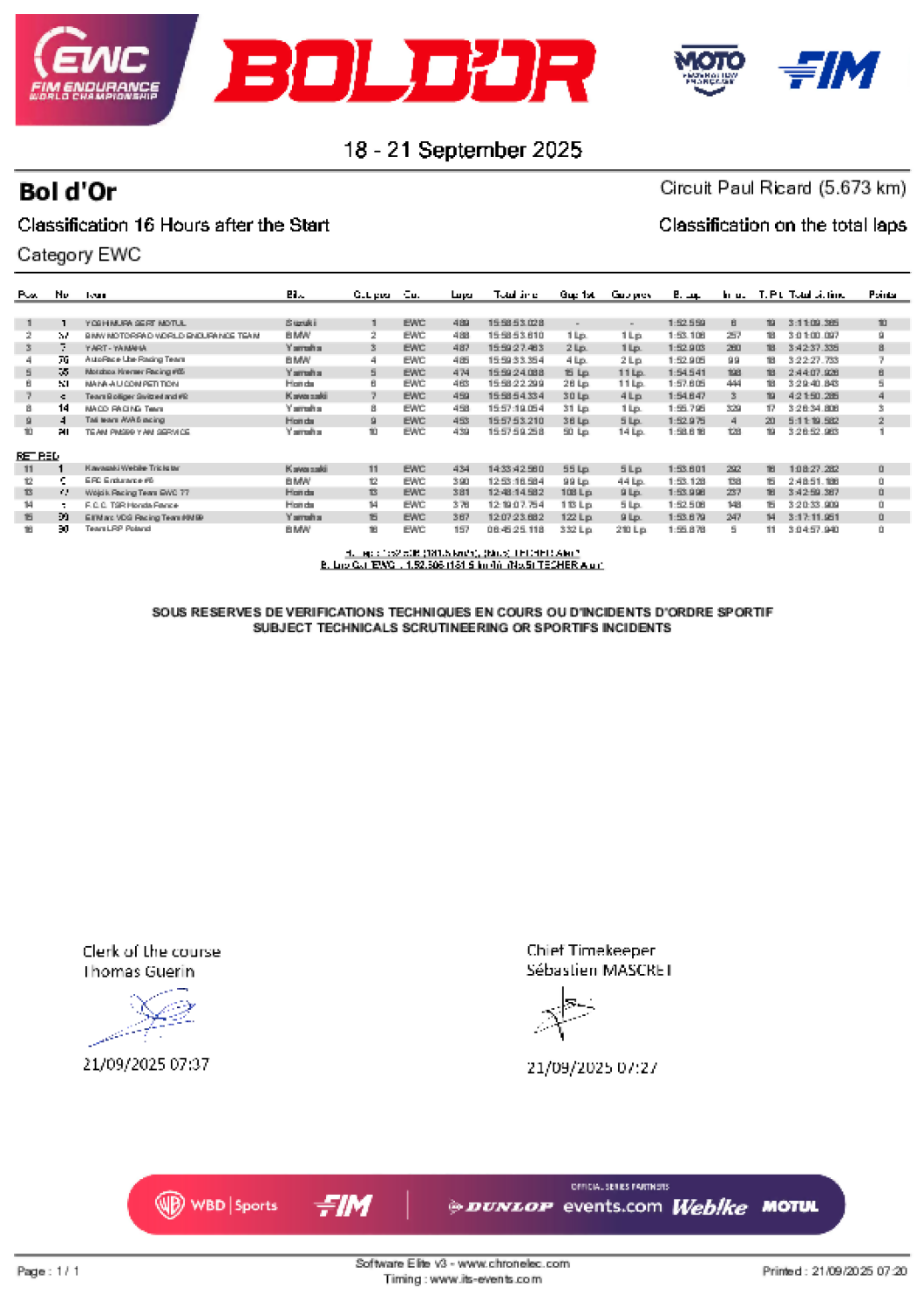 L’Équipe Elf Marc VDS / KM99 remercie chaleureusement ses partenaires pour leur confiance, ainsi que tous ses fans japonais présents à Suzuka, sans oublier ceux qui ont soutenu l’équipe à distance.
