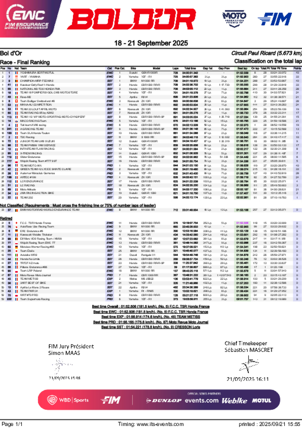 L’Équipe Elf Marc VDS / KM99 tient à remercier chaleureusement tous les membres de l’équipe pour leur engagement sans faille, ses partenaires pour leur confiance, ainsi que les fans pour leur soutien indéfectible. Rendez-vous la saison prochaine, avec la volonté de prendre une belle revanche.